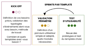 PHASE 1 – BUILD : Conception et développement des X templates (événements physique, hybride ou digital). L’objectif ici est de valider les hypothèses de départ et affiner le scope fonctionnel et technique du projet. Définir les facteurs clés de succès du projet.