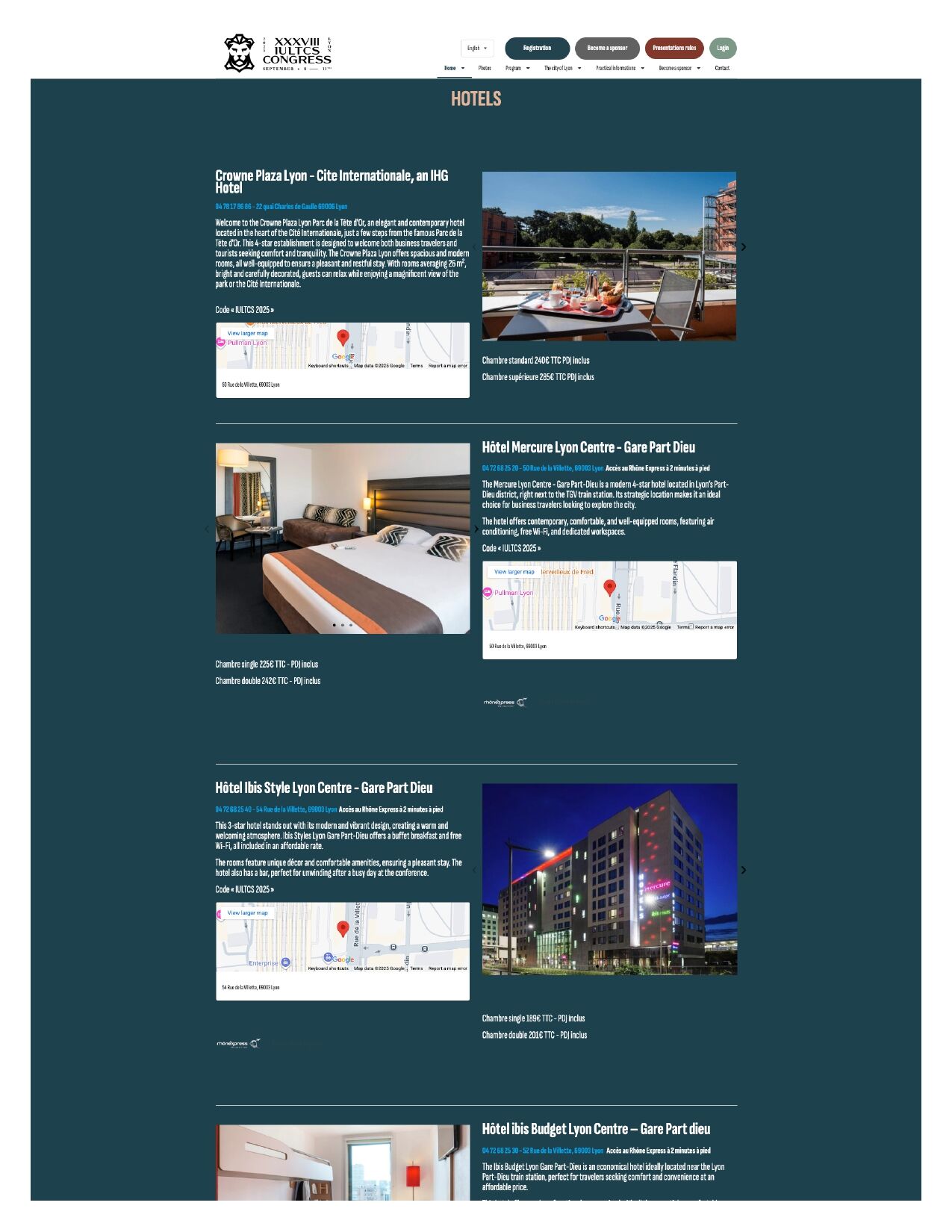 • Einrichtung einer vollständigen und responsiven Veranstaltungswebsites, optimiert und in Französisch und Englisch verfügbar, um alle Informationen zum Kongress zu zentralisieren.