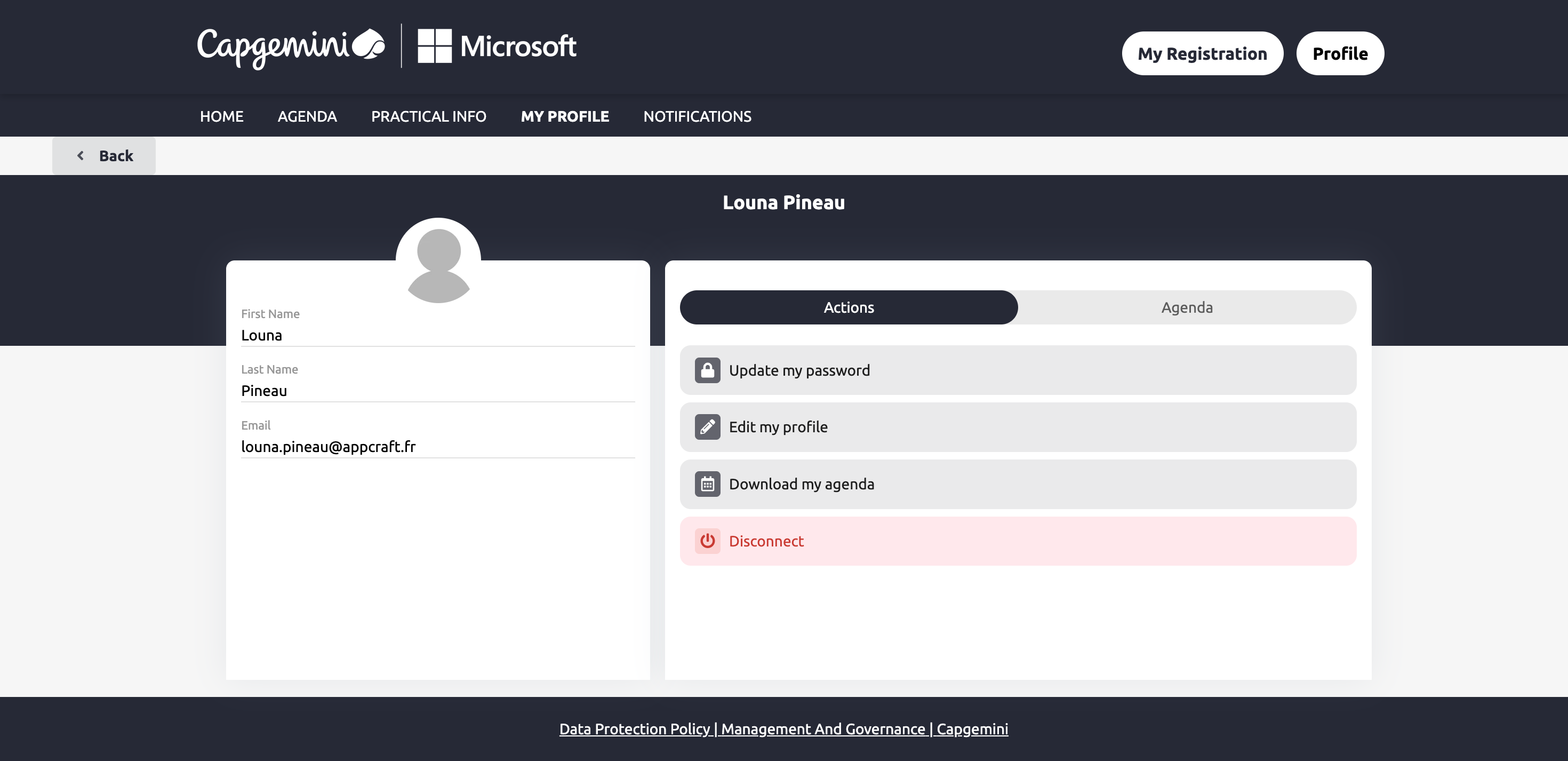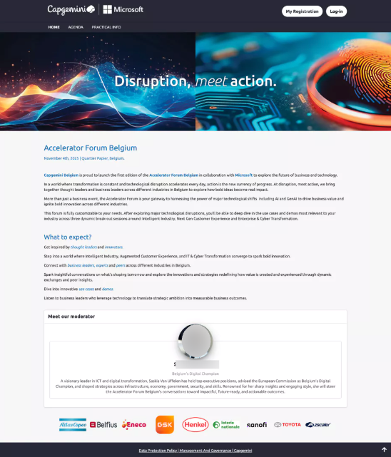 • Configuration of a consistent event website aligned with Capgemini's identity.
