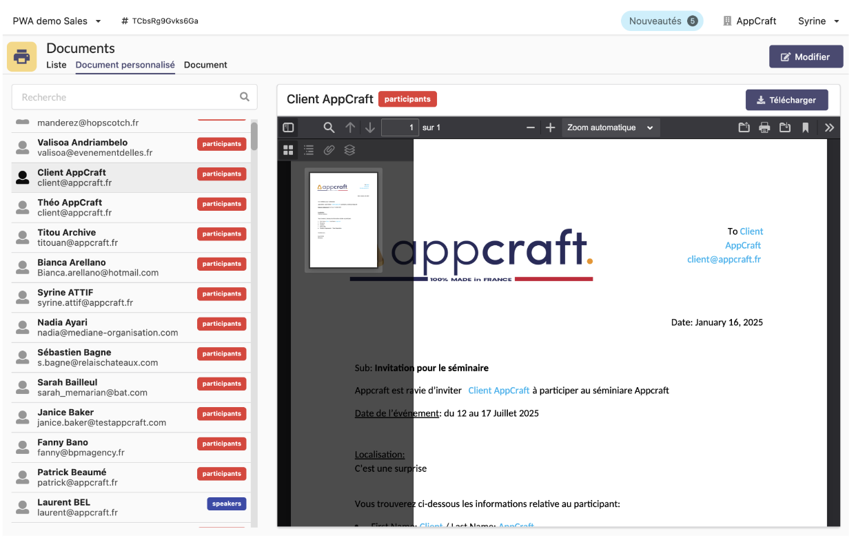 • Customization per participant: Automatically add last names, first names, dates, and other specific information.