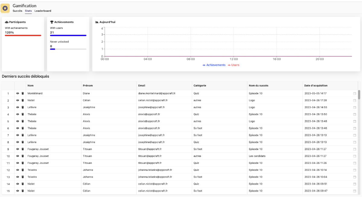 → Taking a playful approach inspired by video games, participants progress through statuses such as "curious," "knowledgeable," and "studious," unlocking points through simple actions at the beginning, such as viewing the program or downloading a document. The levels gradually increase, with bonuses for those who find hidden codes, adding a treasure hunt dimension to the event.