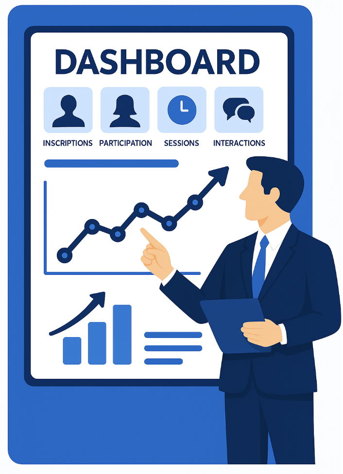 – Número de inscritos, asistencia real, tasa de participación por segmento.