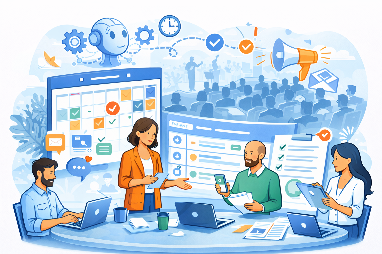 Freelances événementiels collaborant sur l’organisation et la gestion d’événements professionnels via une plateforme digitale centralisée.