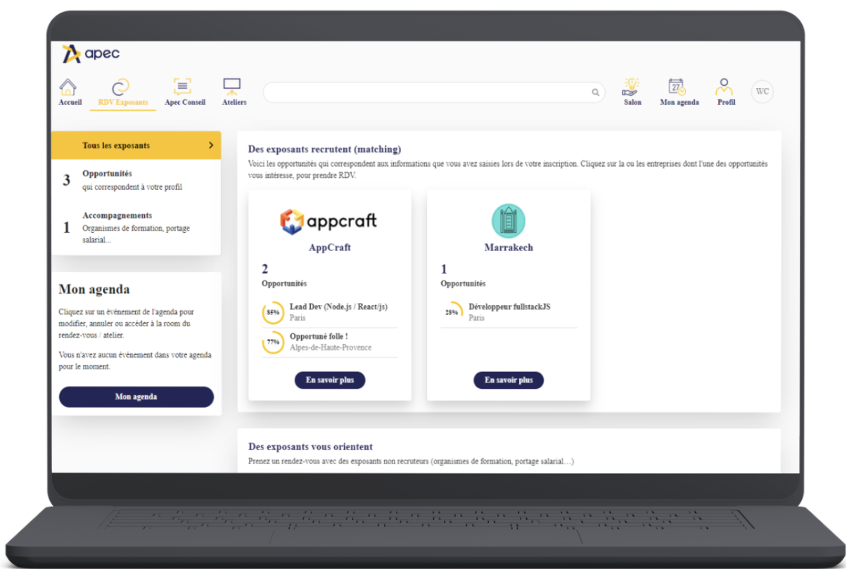 Mise en évidence du taux de matching entre le participant et l’exposant ou l’offre d’emploi.