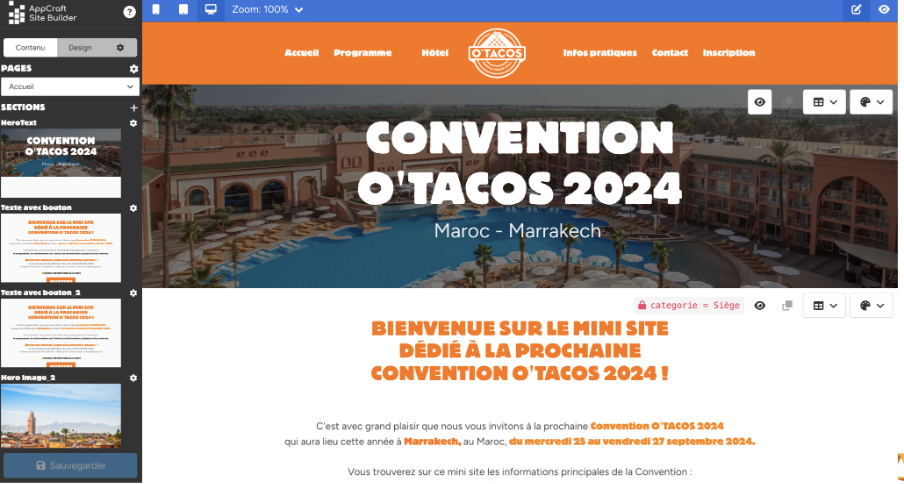 • Organisation claire du contenu : possibilité de structurer le site web de l’événement en plusieurs onglets