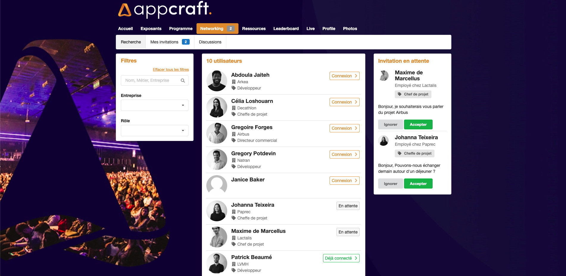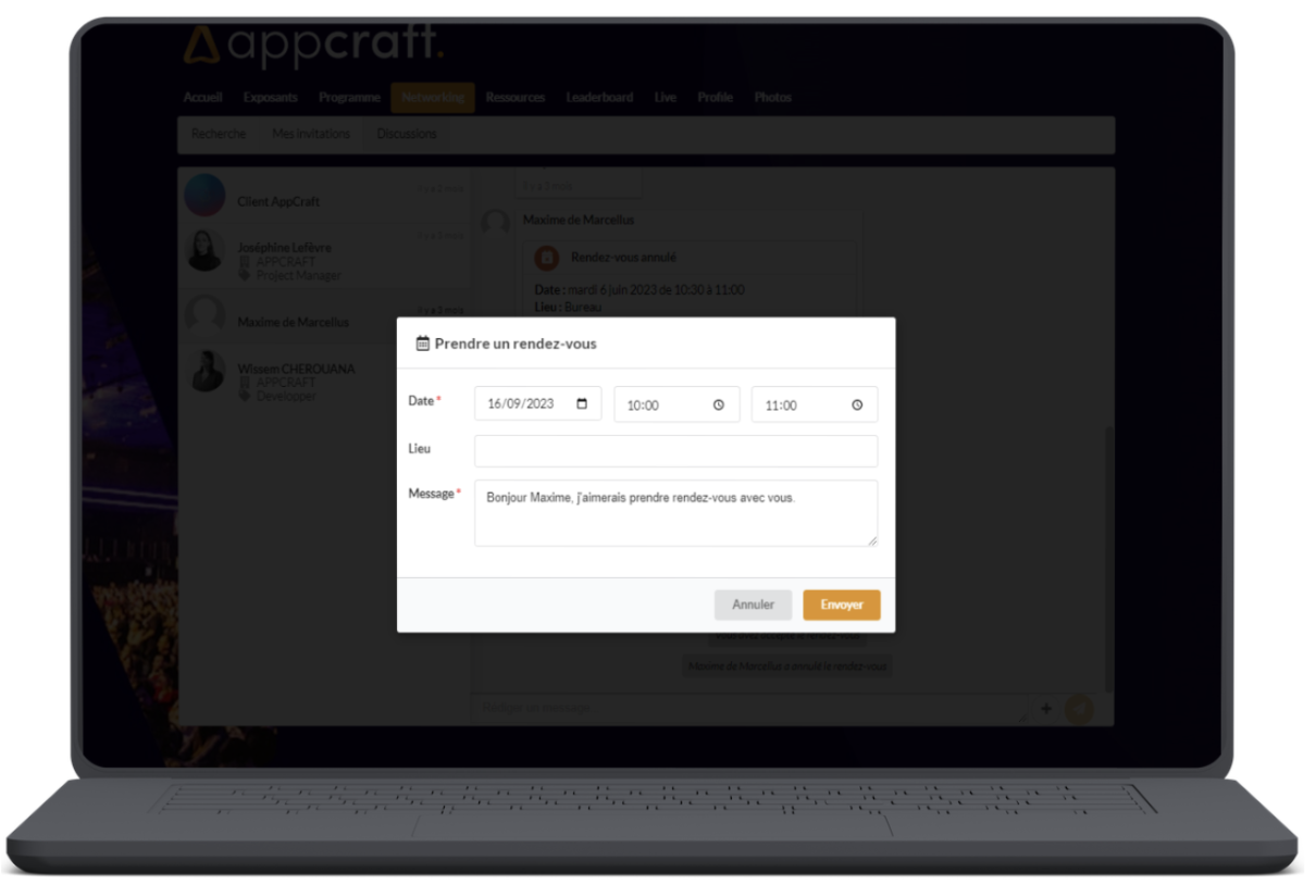 AppCraft – networking entre participants, annuaire interactif avec trombinoscope, messagerie privée et prise de rendez-vous intégrée