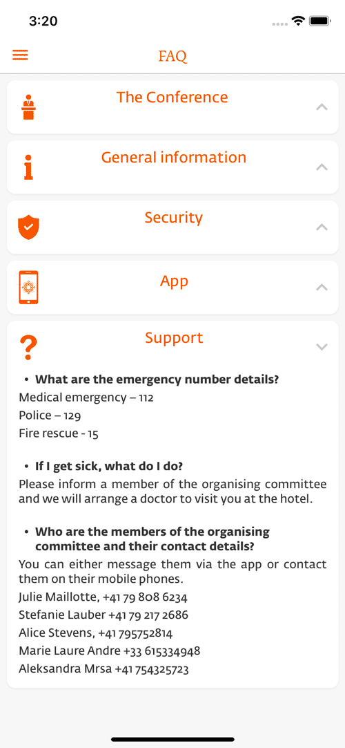 • Une application mobile avec des agendas personnalisés (sessions, visites, hôtel, repas, …)
